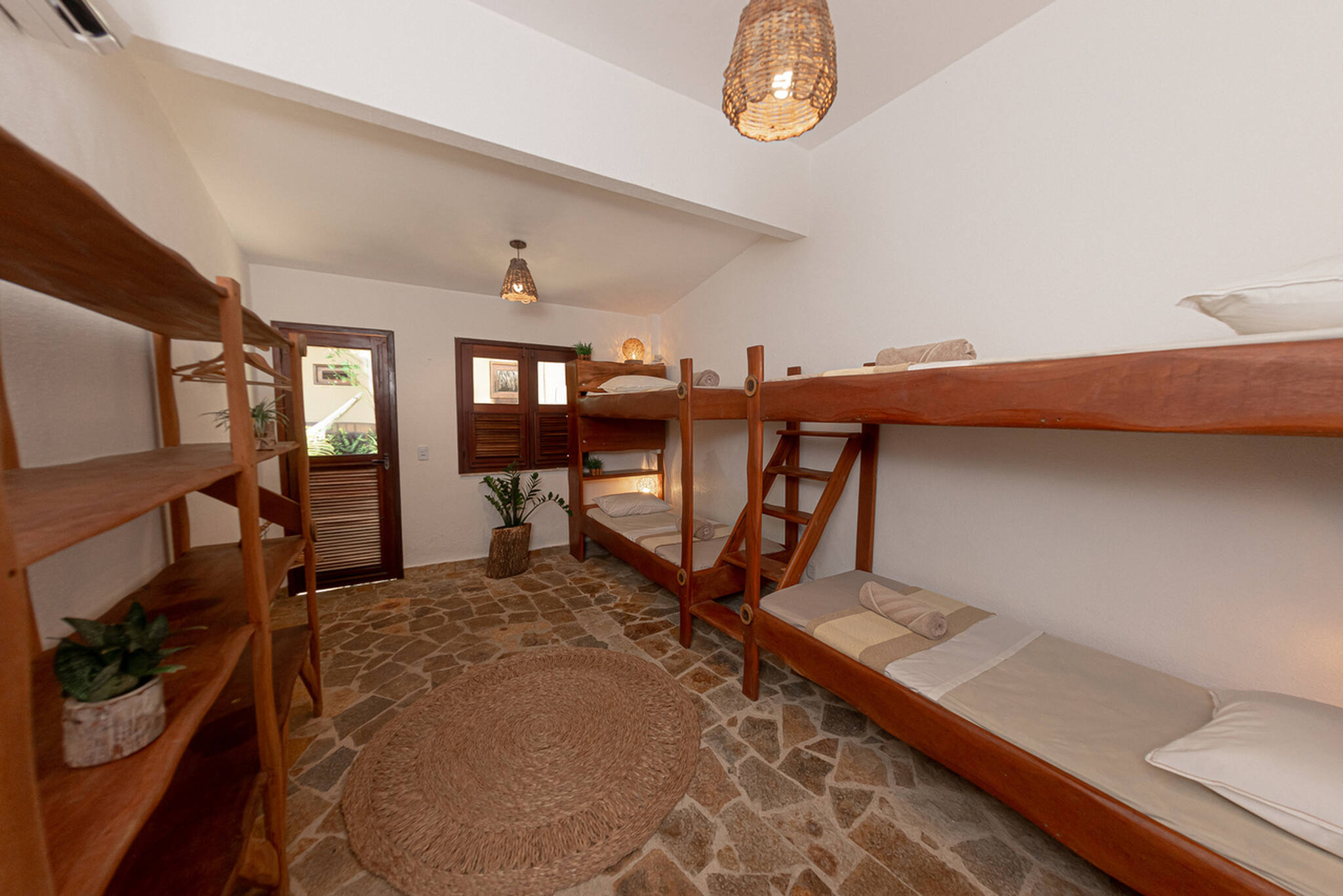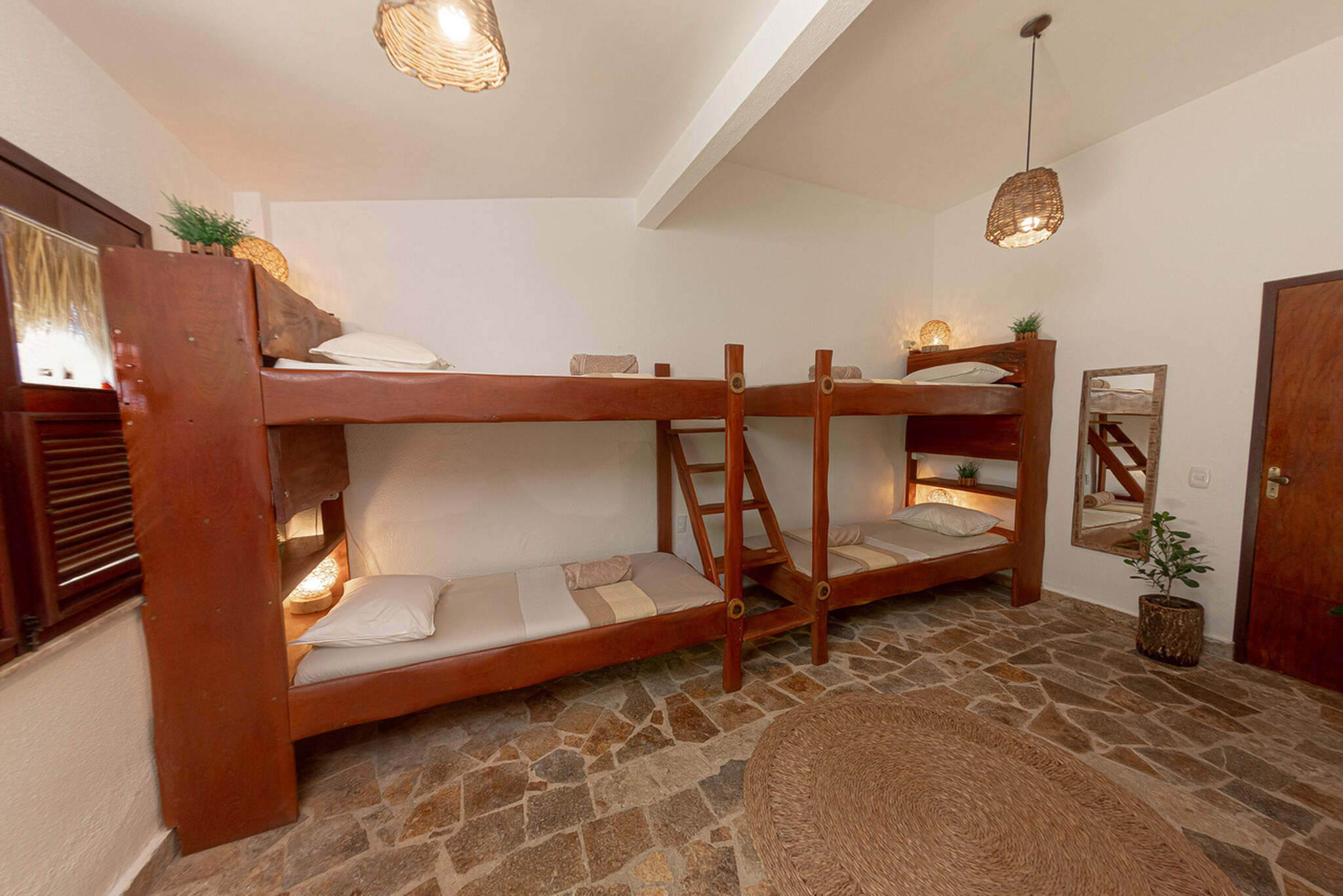 Mixed dormitory for four people with two bunk beds, air conditioning, lockers for valuables and a shared bathroom.