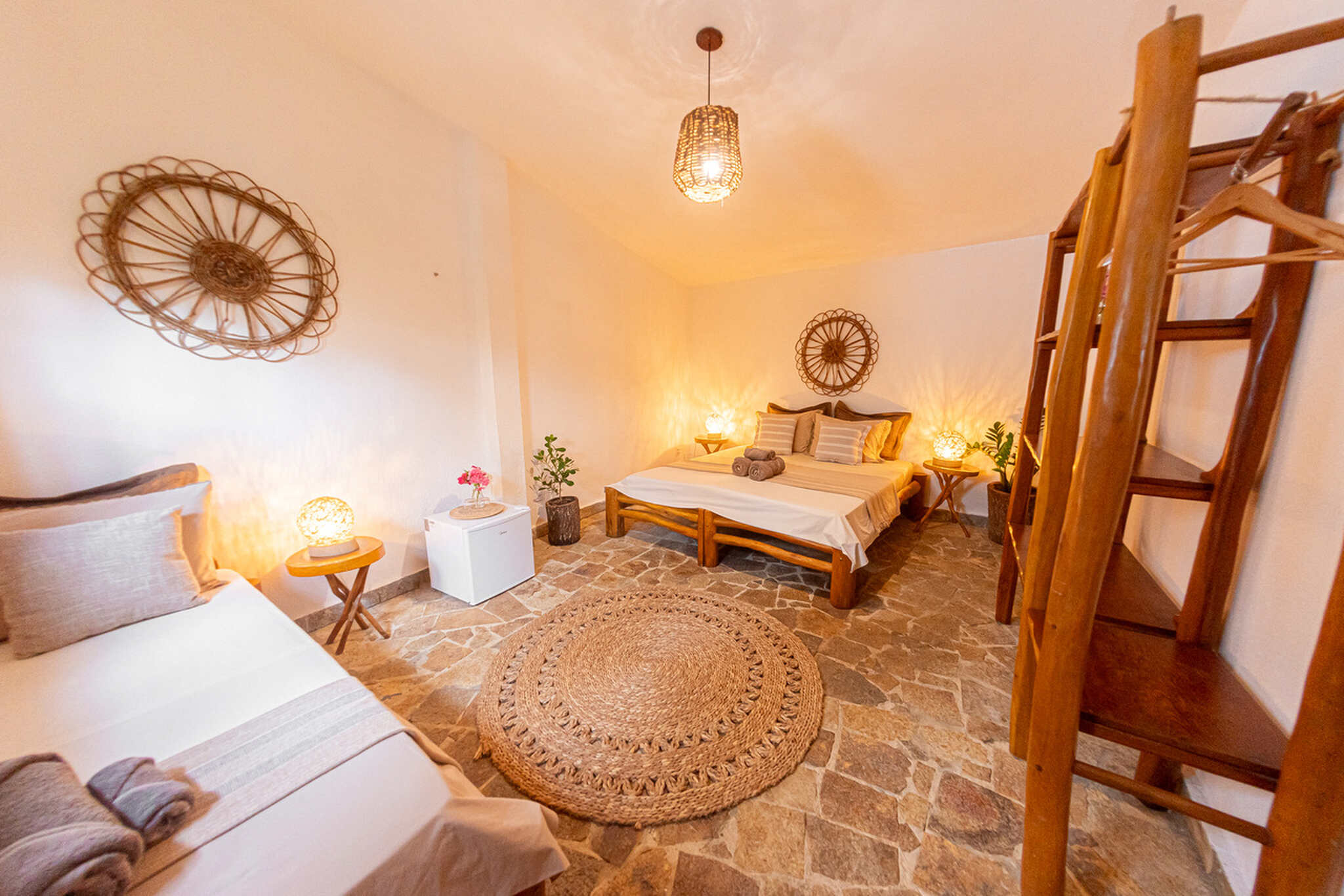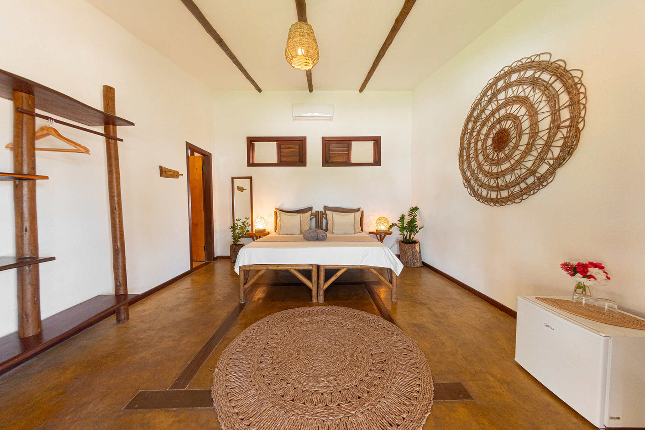 Cozy, simple rooms with garden view, fan, minibar and hot shower.