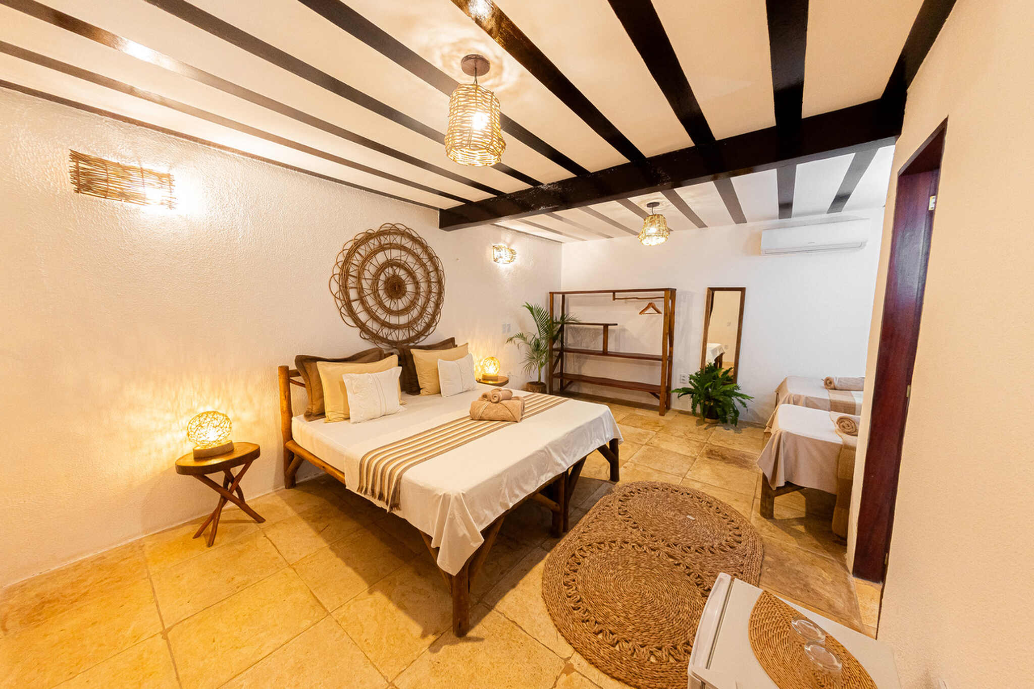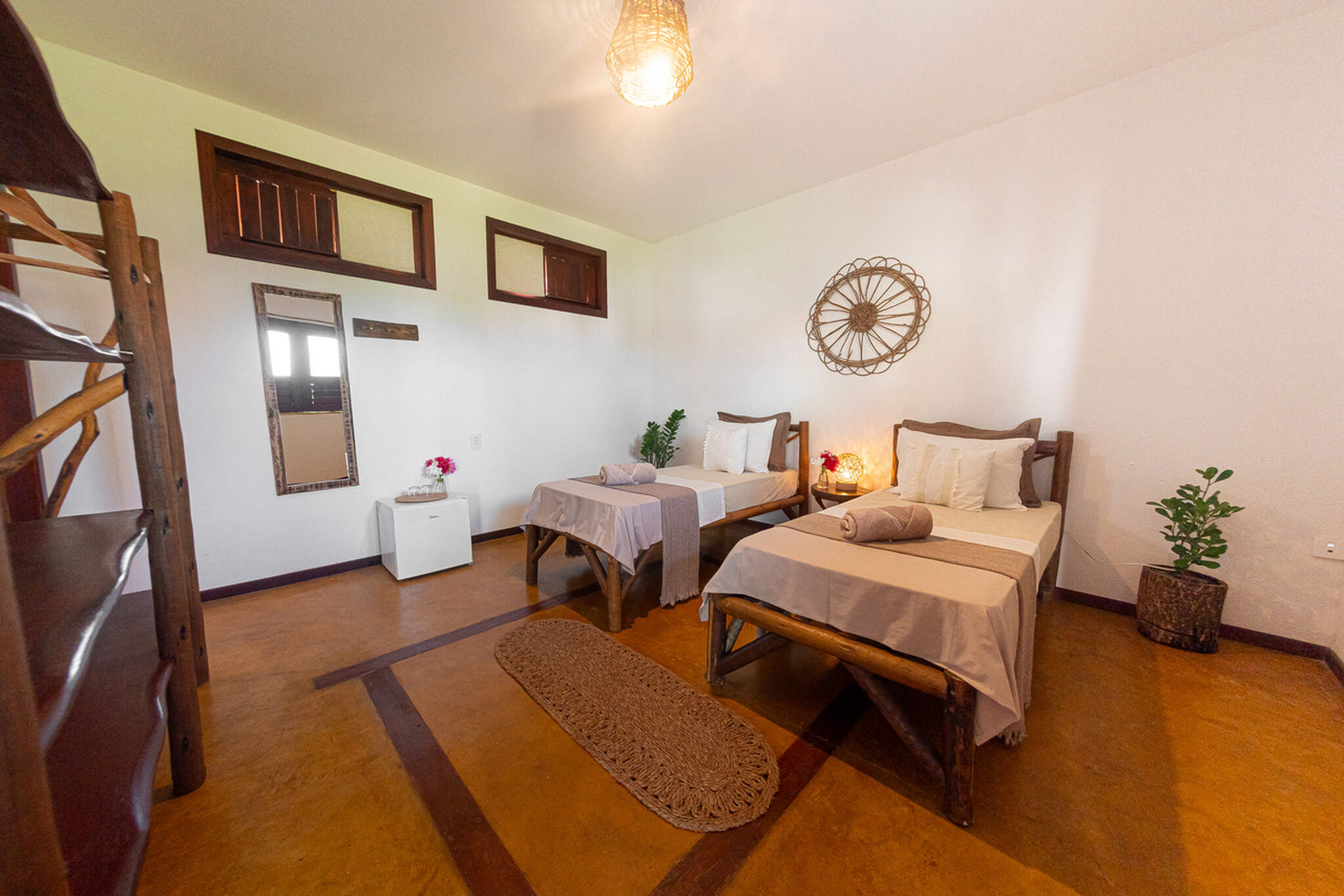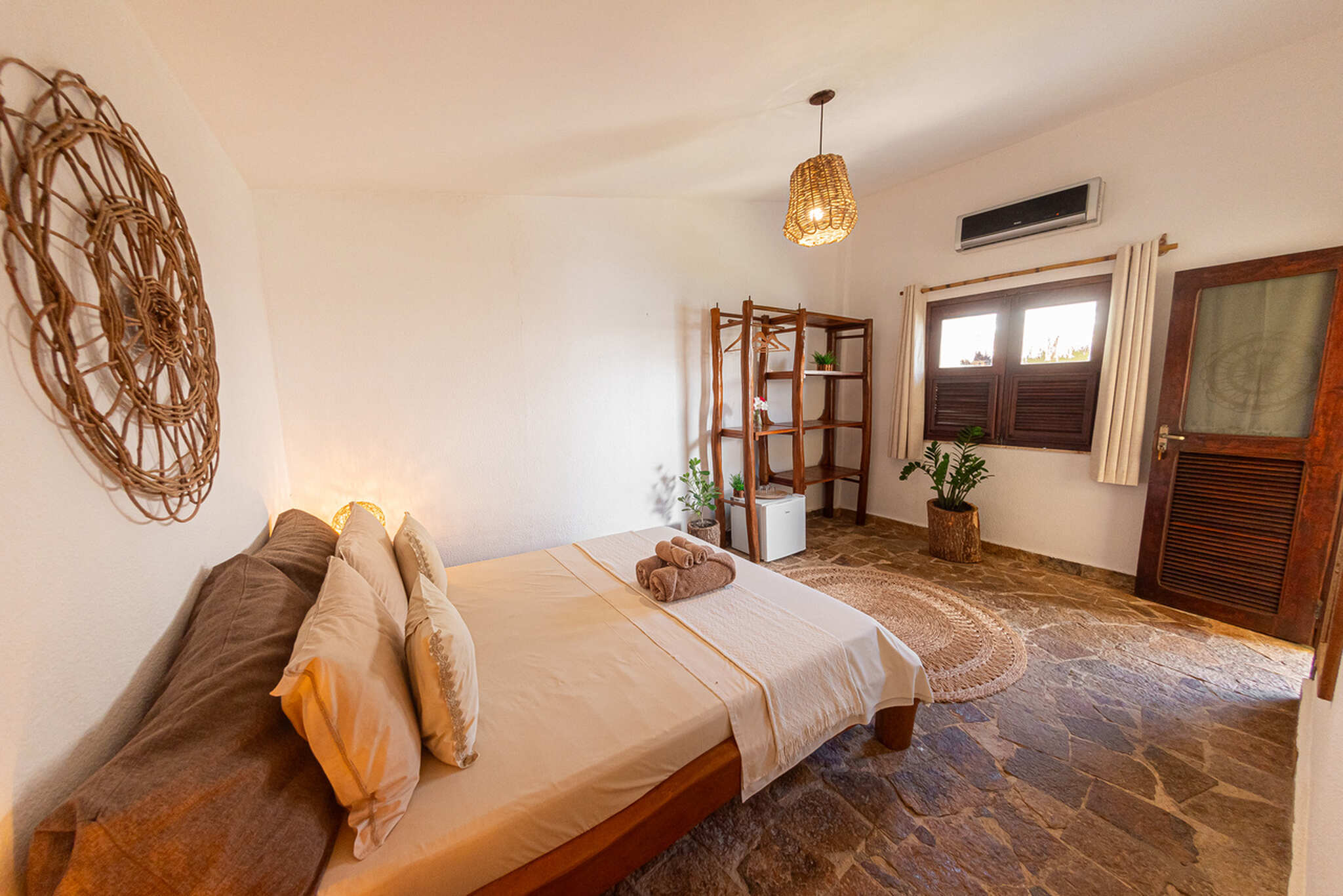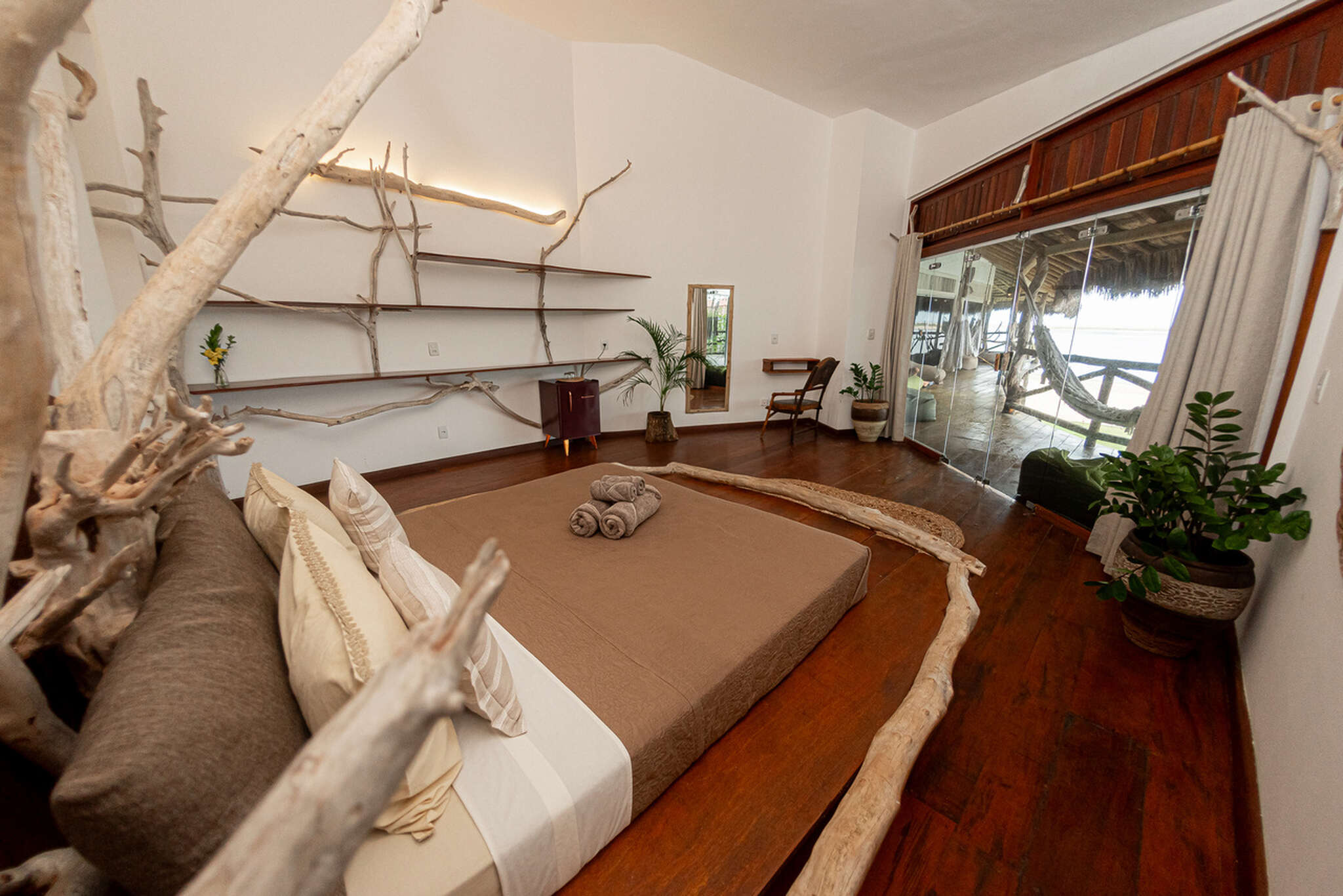 The separate kite storage and daily transfers to the low-tide kite spot are already included in the price. Our pousada also features a swimming pool, cozy hammocks, a co-working space with lagoon views, a pool table, foosball table, and a large restaurant and bar area. We also have a projector for live sports broadcasts. Free WiFi is available throughout the entire property. We look forward to welcoming you to Ilha do Guajiru. By the way: We source 100% of our electricity from our own solar energy system.